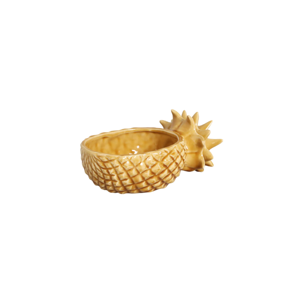 Para quem ama peças marcantes e cheias de personalidade, o Bowl Abacaxi Mostarda é o destaque perfeito. Com design inspirado na fruta, ele traz um toque tropical e divertido para servir petiscos, entradas ou até mesmo decorar com charme. Produzido em cerâmica, tem acabamento esmaltado na cor mostarda, garantindo um visual vibrante e sofisticado para qualquer ocasião. Uma peça versátil que combina com composições modernas ou mesas temáticas.