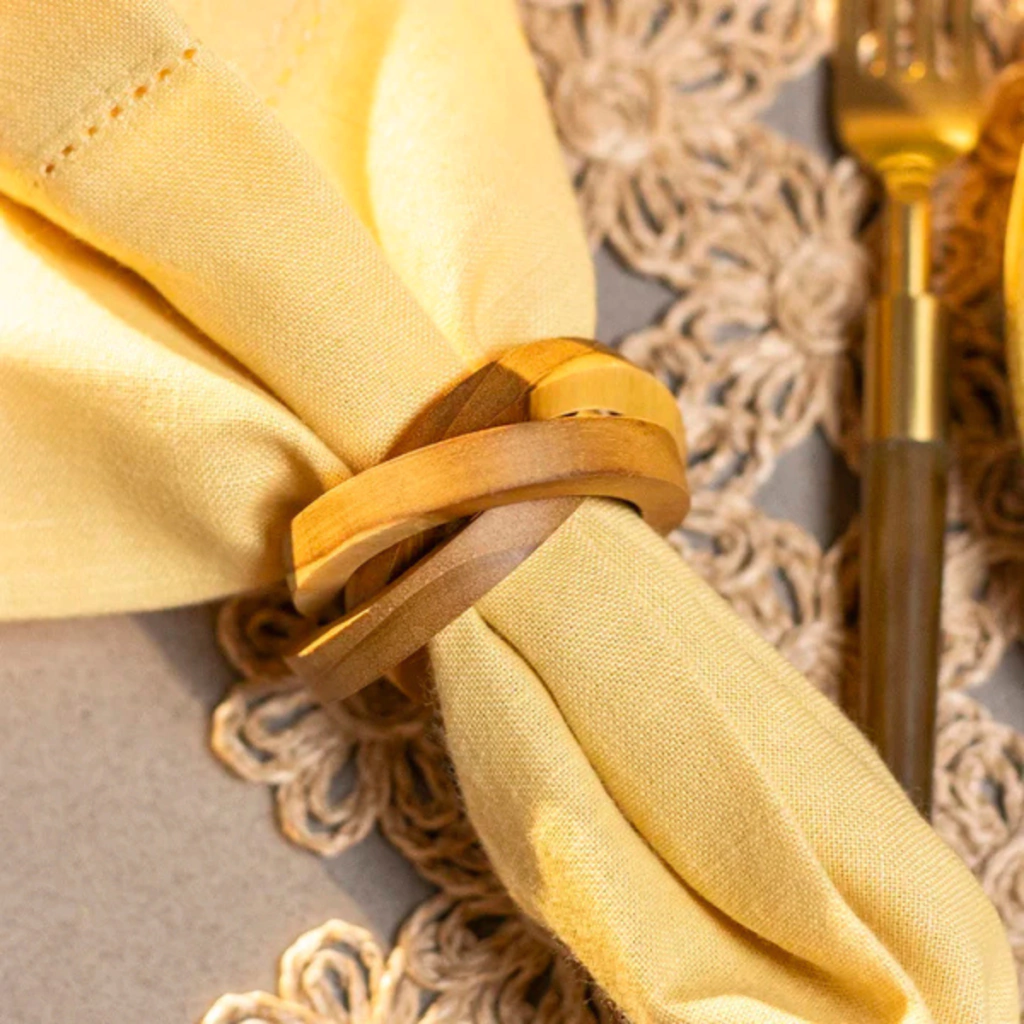 Traga o charme natural da madeira para a sua mesa posta com este conjunto de 4 anéis de guardanapo. As argolas em madeira possuem acabamento rústico e elegante, perfeitas para compor desde produções casuais até mesas mais sofisticadas.