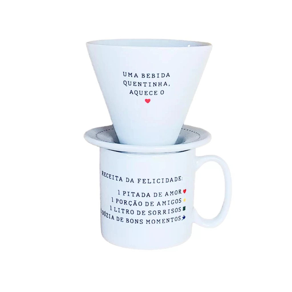 CJ. CAFÉ & AMOR – Coador + Xícara em Porcelana