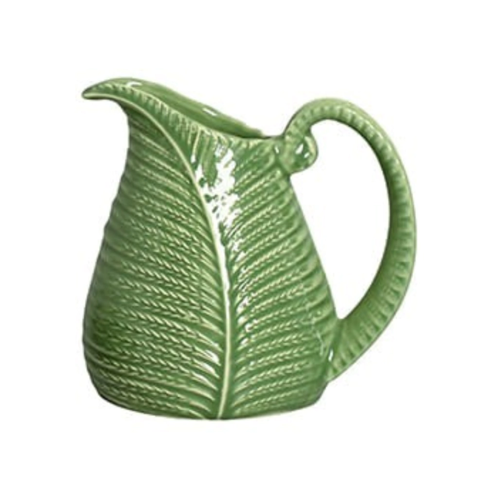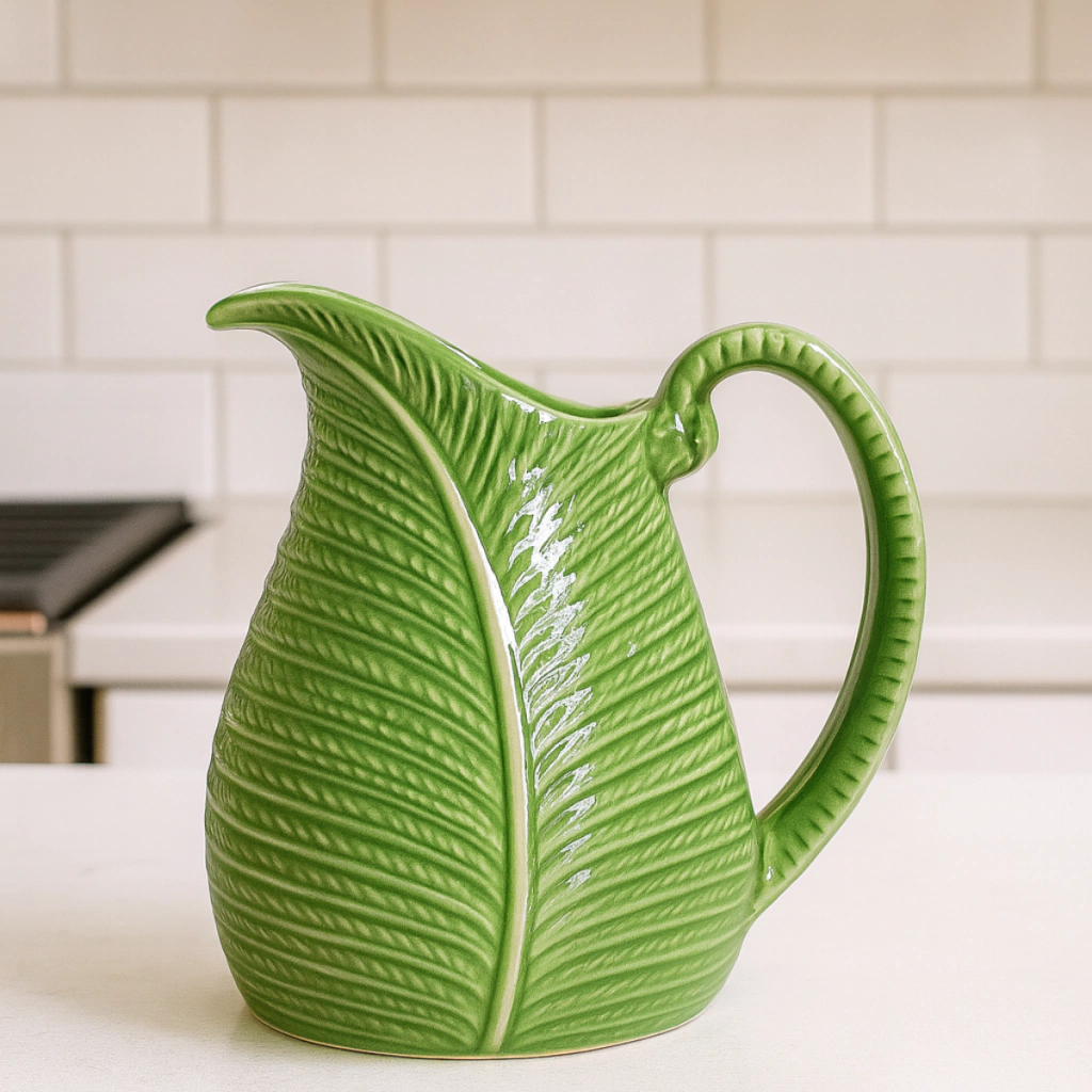 A Jarra Botânica é daquelas peças que transformam a mesa posta de imediato. Produzida em cerâmica de alta qualidade, ela traz textura em alto-relevo inspirada em folhagens naturais, criando um visual sofisticado, orgânico e cheio de personalidade.