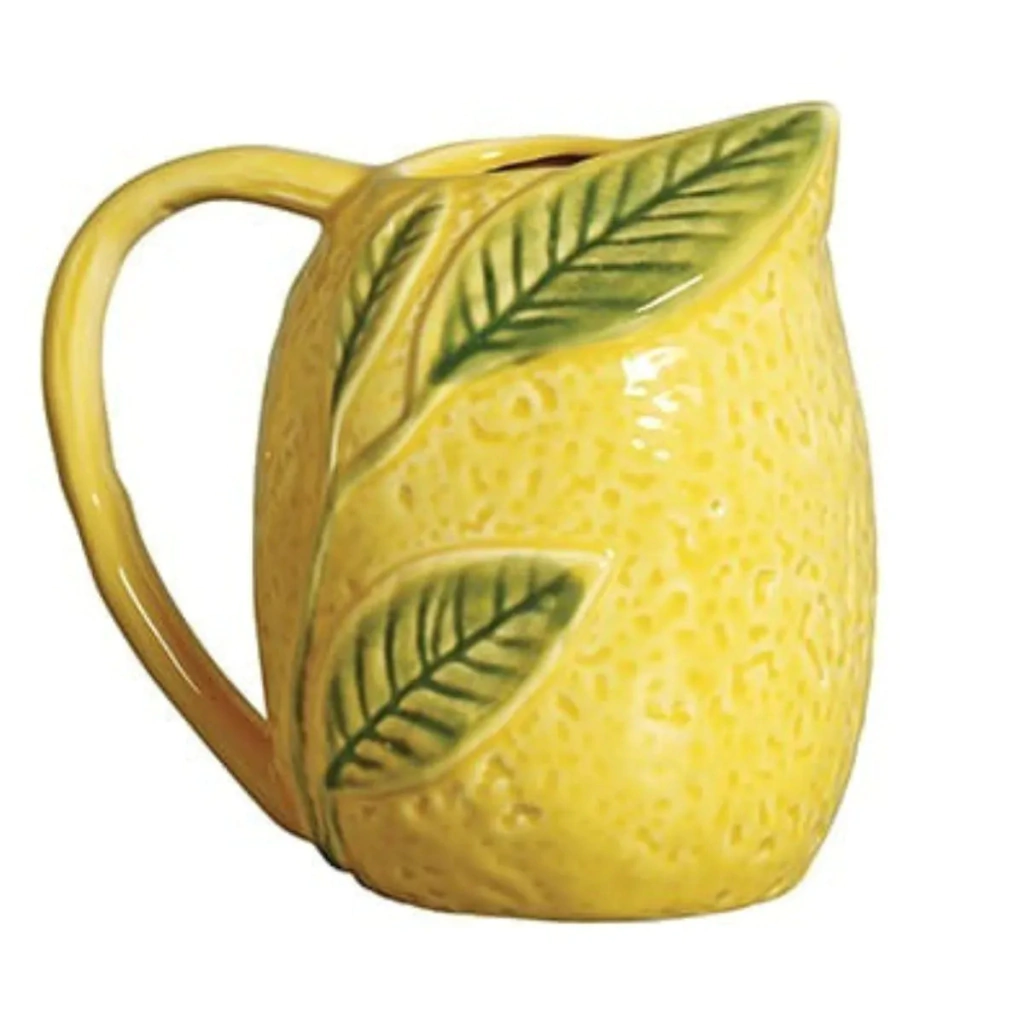 Encante sua mesa com a nossa Jarra Limão Siciliano, uma peça cheia de personalidade, textura e charme mediterrâneo. Produzida em cerâmica, com acabamento brilhante e detalhes em alto-relevo que reproduzem a casca e as folhas do limão, ela leva cor e frescor instantâneo para qualquer ocasião.