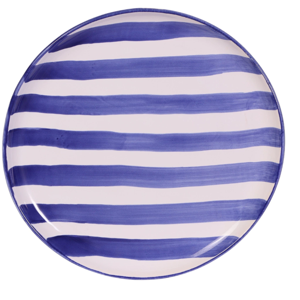 Com um visual vibrante e cheio de personalidade, o Prato Raso Listras Azul é ideal para compor uma mesa posta acolhedora e elegante. Suas listras pintadas à mão garantem autenticidade a cada peça, enquanto o acabamento em alto brilho traz um toque sofisticado. Perfeito para o dia a dia ou ocasiões especiais.