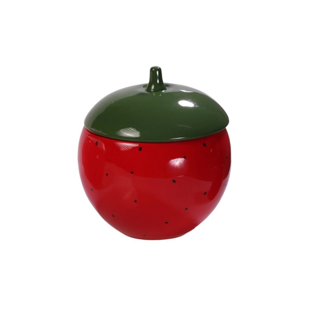 Delicado e cheio de personalidade, o Pote Morango é daquelas peças que encantam à primeira vista. Feito e pintado à mão, com acabamento em alto brilho, ele é ideal para dar um toque de charme à mesa ou à decoração. O processo artesanal garante que cada pote seja único, com pequenas variações que revelam sua autenticidade.